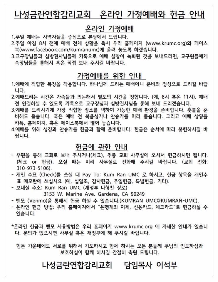 2020년 부활절 목회서신