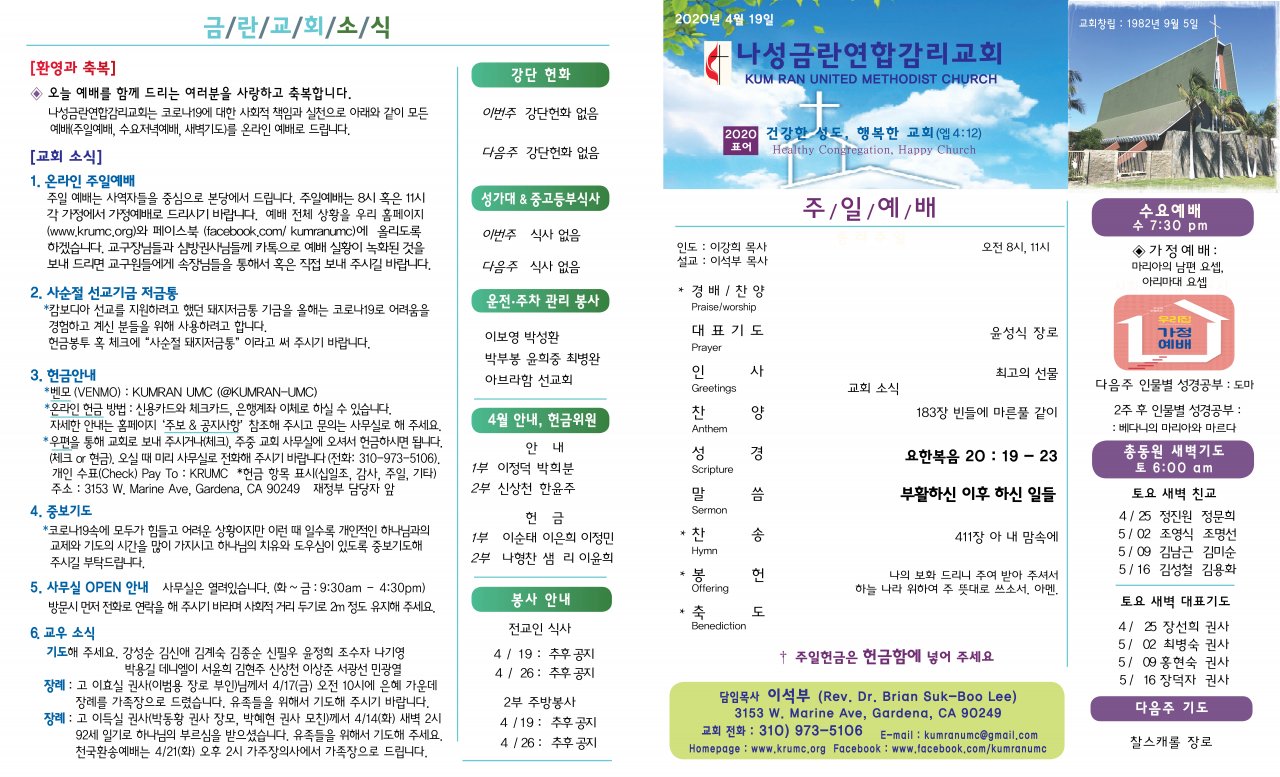 윗 글 : 목회서신(4월18일)(이강희)