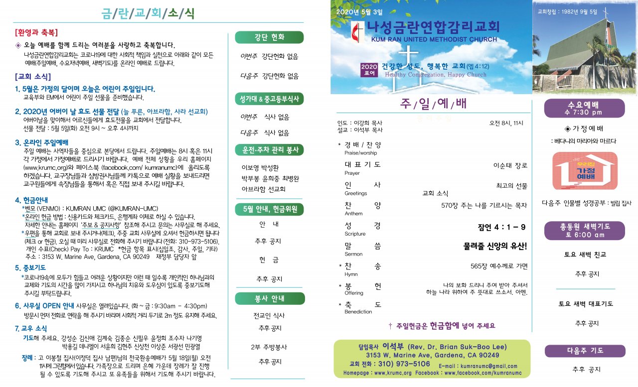 윗 글 : 5월2일(토요일) 목회서신 (이강희)