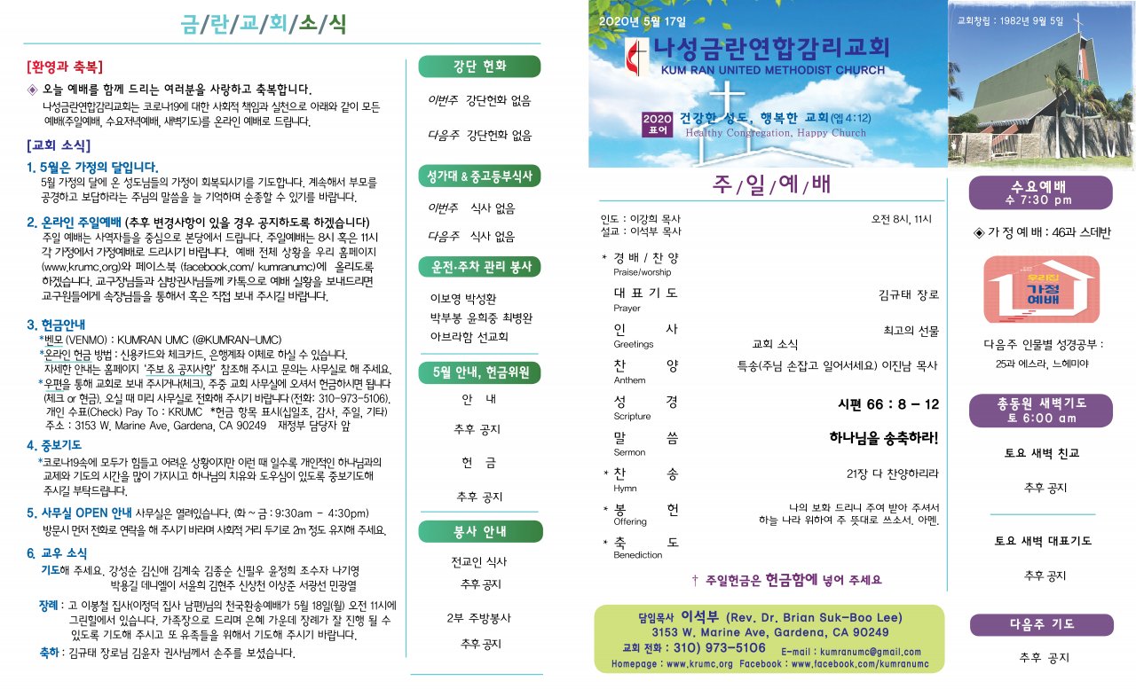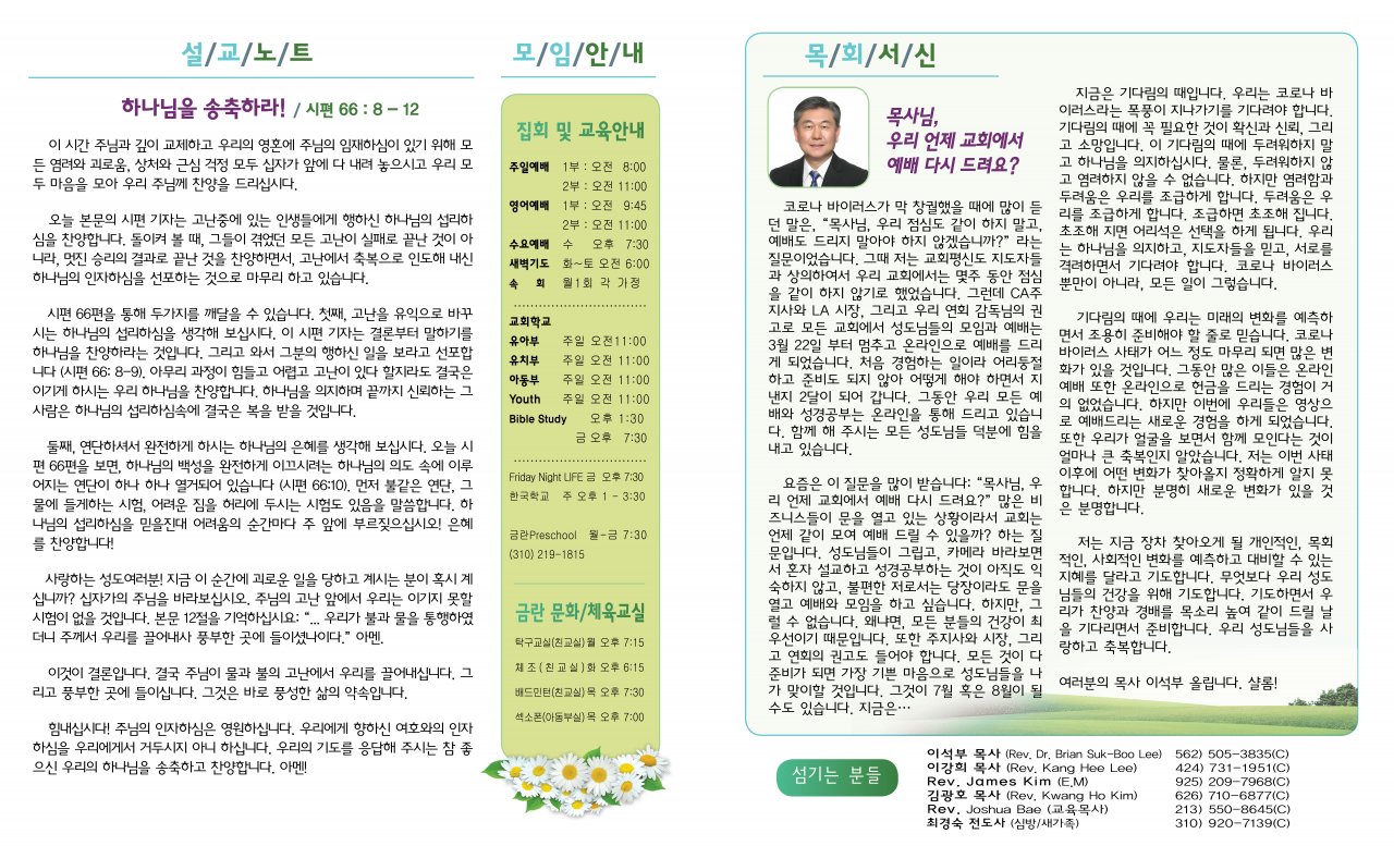 아랫글 : 5월9일(토요일) 목회서신 (이강희)