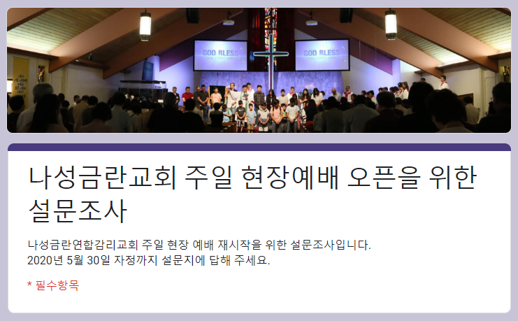 나성금란교회 주일 현장 예배 오픈을 위한 설문조사