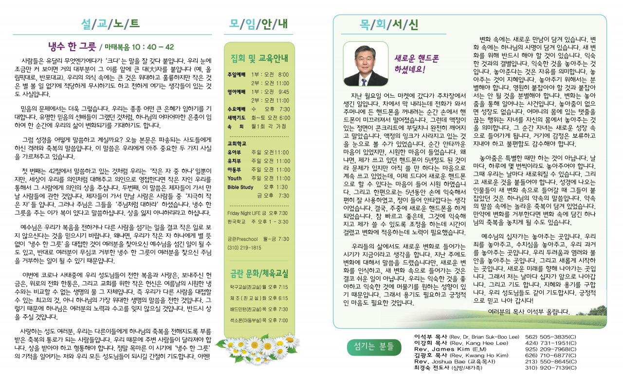 아랫글 : 6월20일(토요일) 목회서신(이강희)