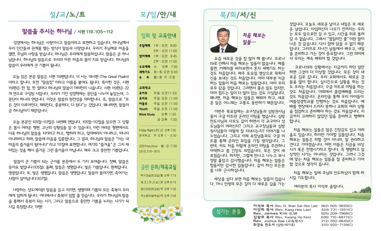 아랫글 : 7월4일(토요일) 목회서신 동영상(이강희)