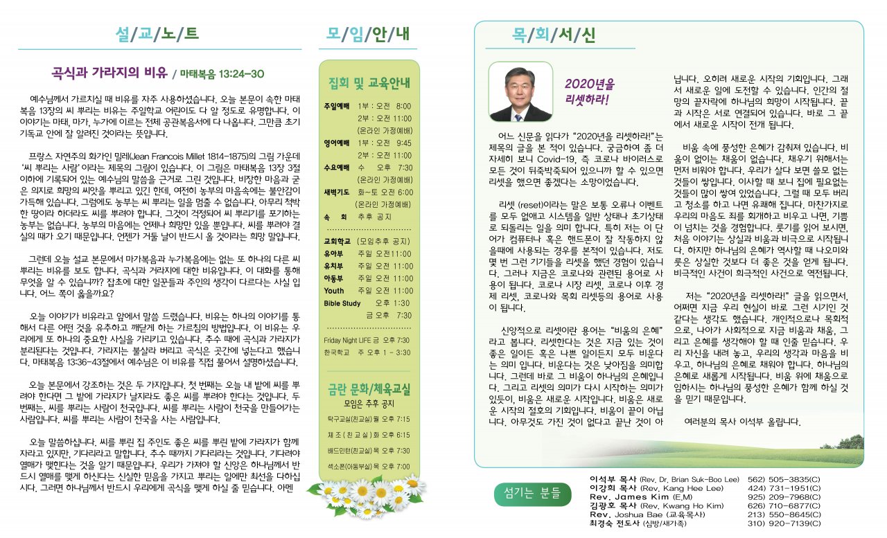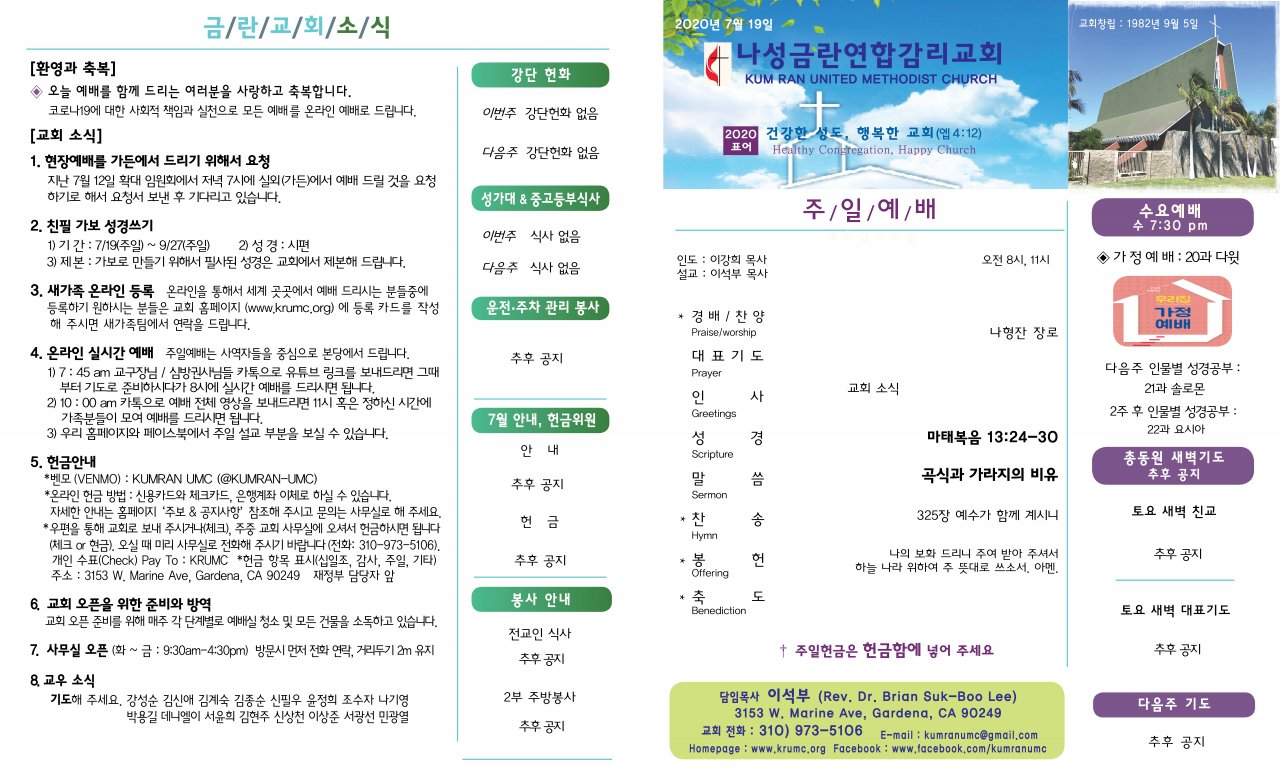 아랫글 : 7월11일(토요일) 목회서신 (이강희)