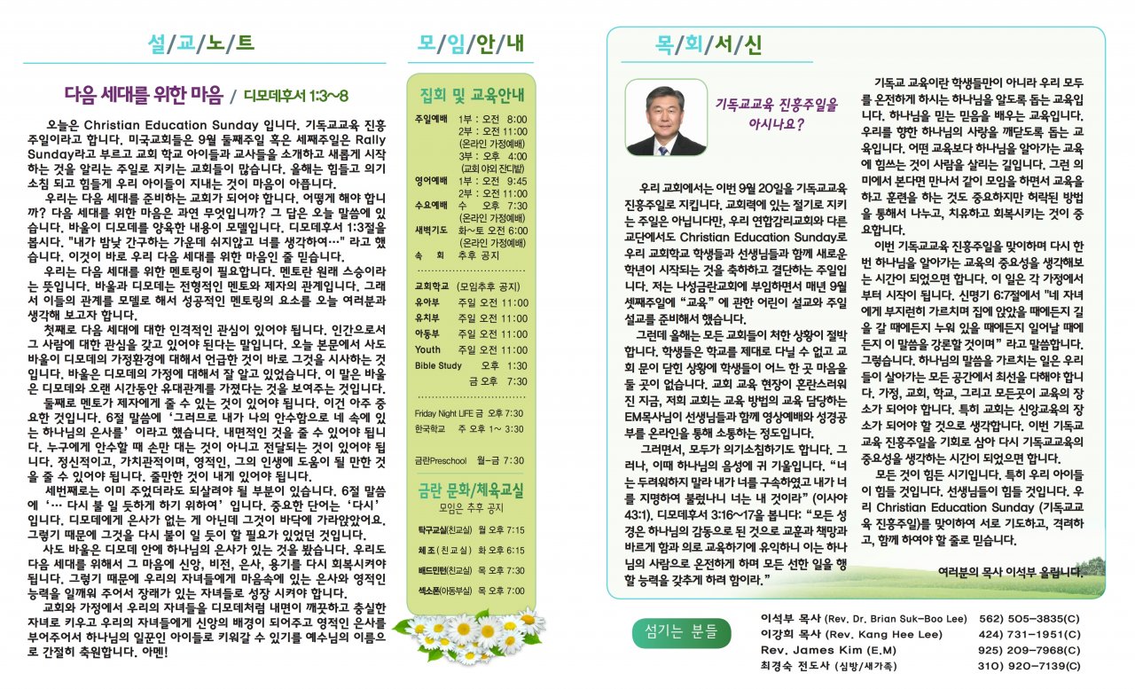 아랫글 : 9월12일(토요일) 목회서신(이강희)