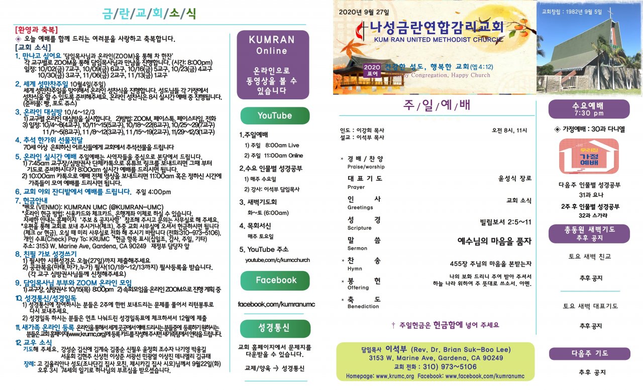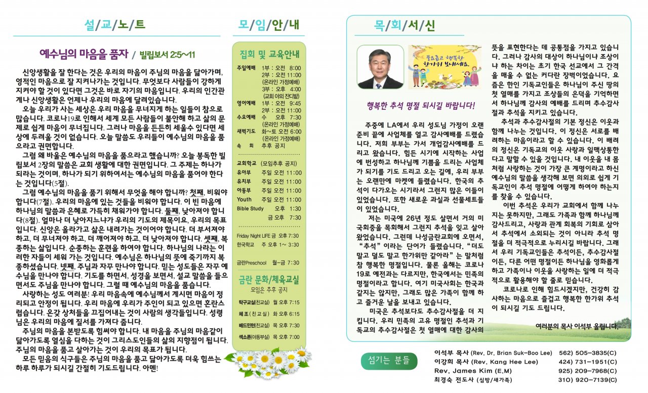 윗 글 : 9월26일(토요일) 목회서신(이강희)