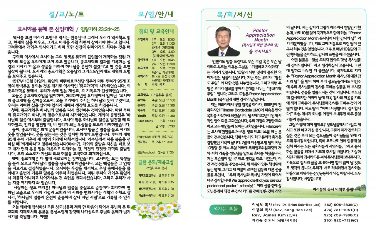 아랫글 : 10월17일(토요일) 목회서신(이강희)