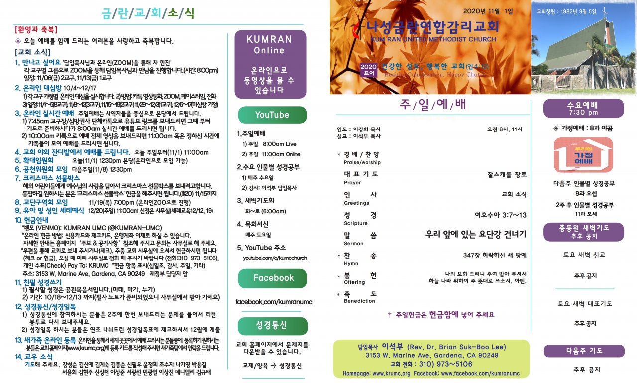 윗 글 : 10월 31일(토요일) 목회서신(이강희)