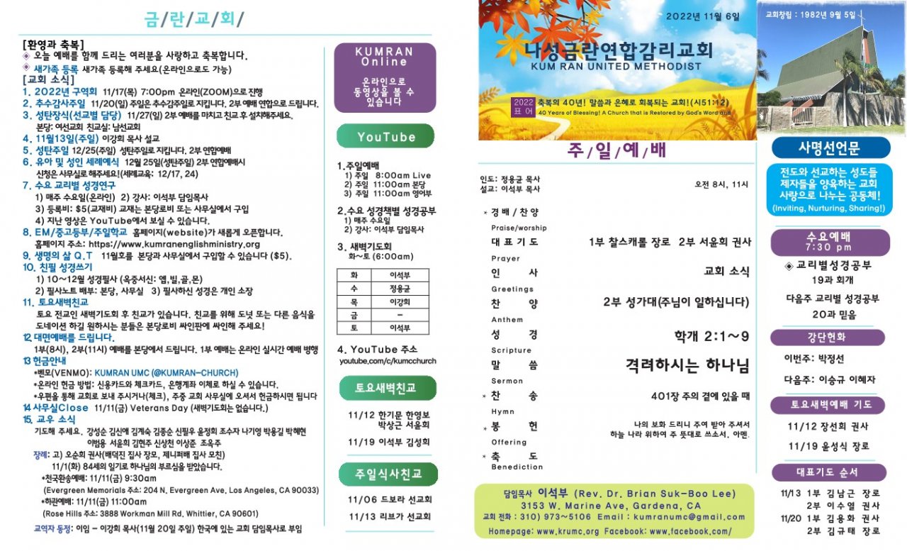 11월 6일(주일) 주보