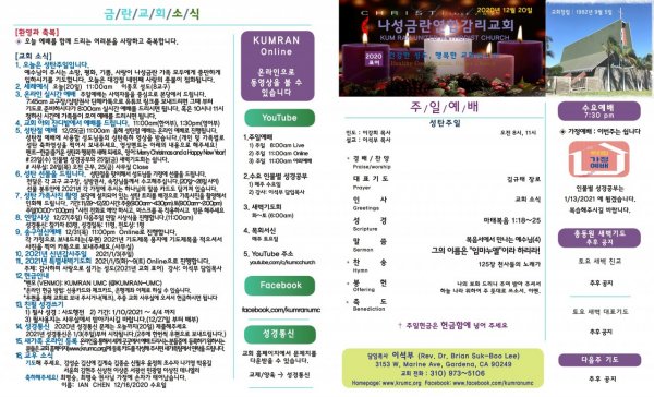 날짜: 2020.12.28 글쓴이 : 이강희 | 주보 & 공지사항